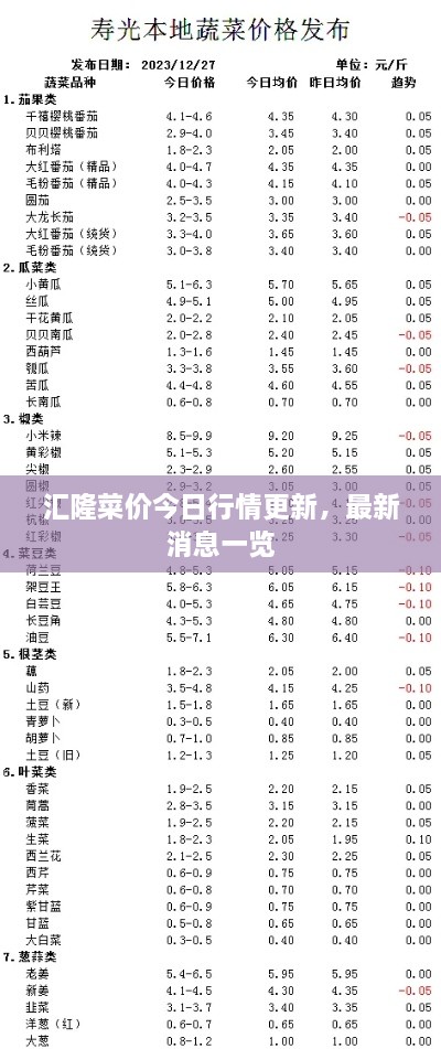 随着人们对食品消费需求的日益增长,蔬菜价格成为了日常生活中备受关注的话题,作为重要的蔬菜产地和交易场所之一,汇隆菜市场的价格动态对于广大消费者来说具有极高的参考价值,本文将为大家带来今日汇隆菜价的最新消息,以便大家了解市场动态,合理安排购物计划。