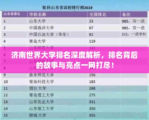 随着全球教育水平的不断提升,世界大学排名成为了众多学子关注的焦点,作为山东省的省会城市,济南的高等教育资源丰富,其大学在全球范围内的排名也备受关注,本文将为您详细解析济南世界大学排名情况。