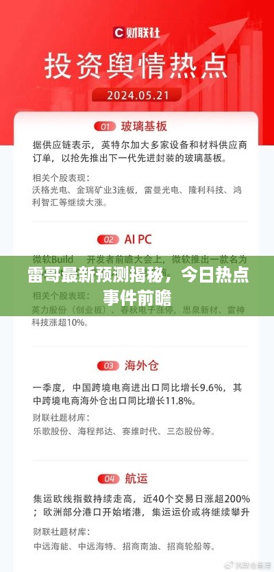随着信息时代的发展,各种资讯如潮水般涌现,在这个信息爆炸的时代,如何获取准确、及时的信息成为大家关注的焦点,我们来聊聊一个备受关注的话题——今日雷哥预测最新消息。